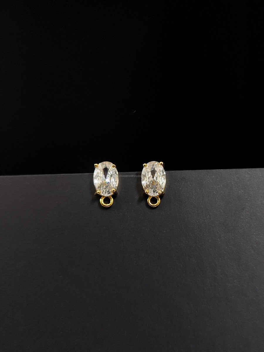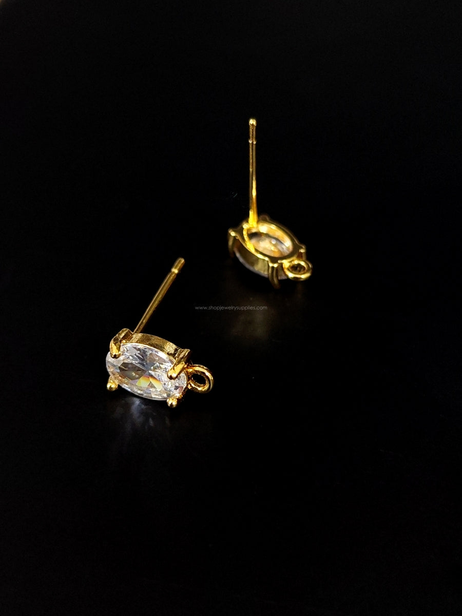 18K Gold Plated Brass oval Cubic Zirconia Stud Earring Findings Clear CZ CZEF08 2 pieces