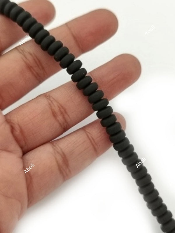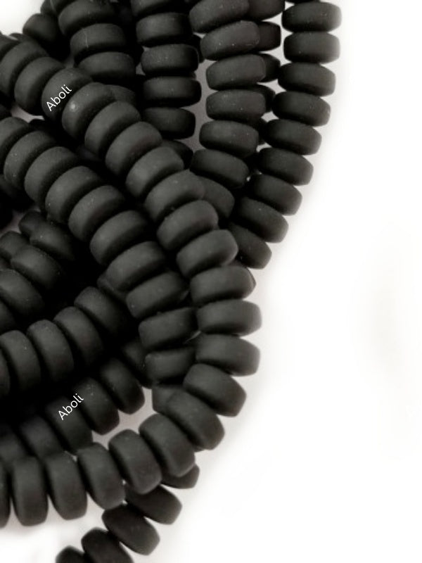 Black disc polymer clay beads tyre shaped beads 6 x 3 mm PCB06 1 full strand