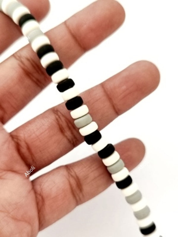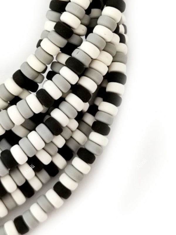 Black Grey white disc polymer clay beads tyre shaped beads 6 x 3 mm PCB05 1 full strand