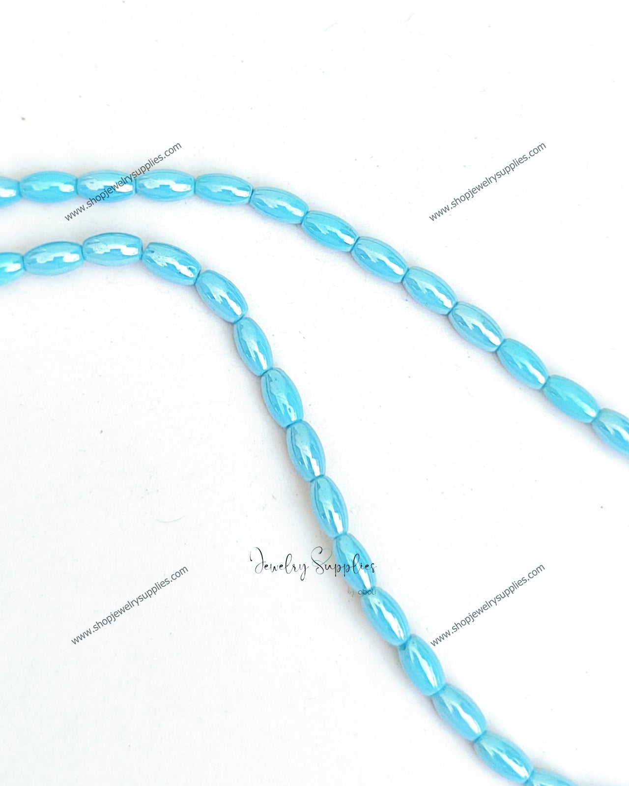Blue glass beads oval 8 x 4 mm pearl luster OGB04 1 full strand