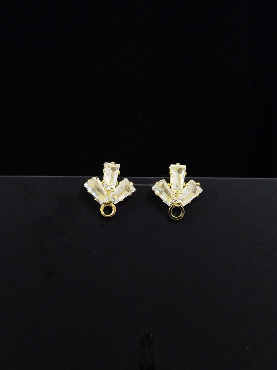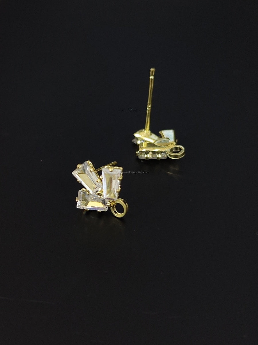 Brass golden Cubic Zirconia Stud Earring Findings Clear Stone earrings Making Supplies CZEF04 2 pieces