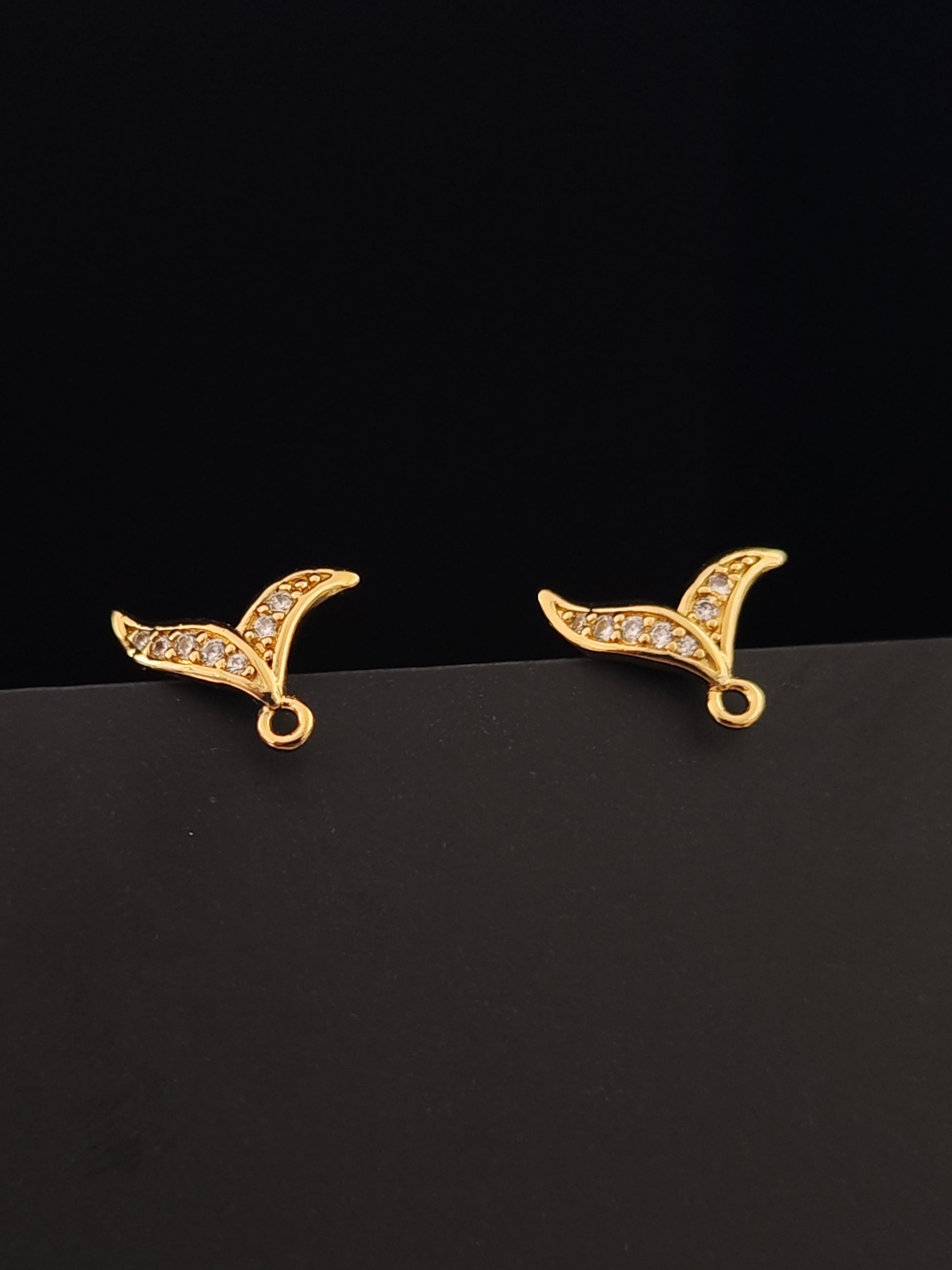 Cubic Zirconia golden fishtail earring finding 18 K gold plated brass micro pave earring making CZELB04