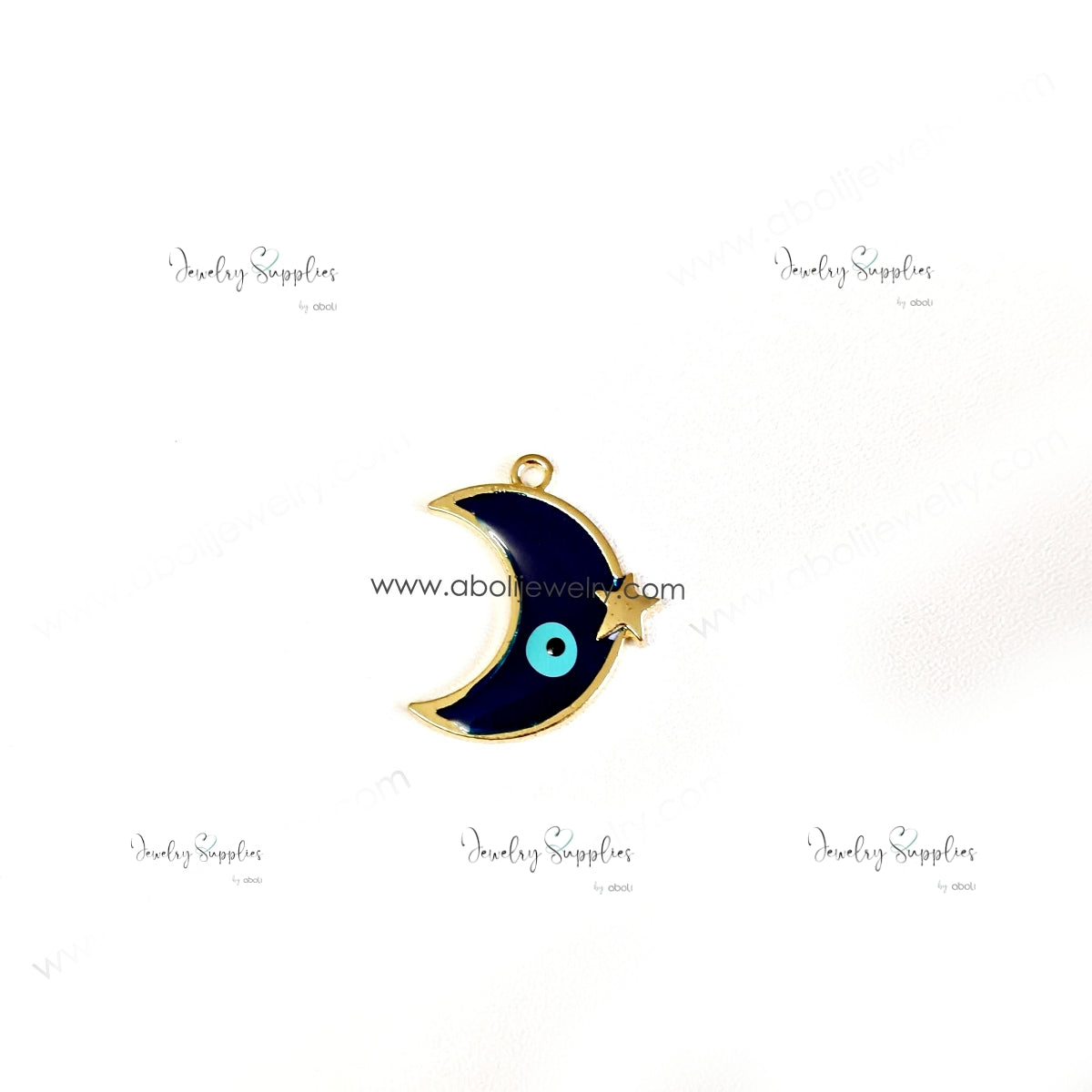 Dark blue Evil eye moon charm Crescent evil eye pendant charm