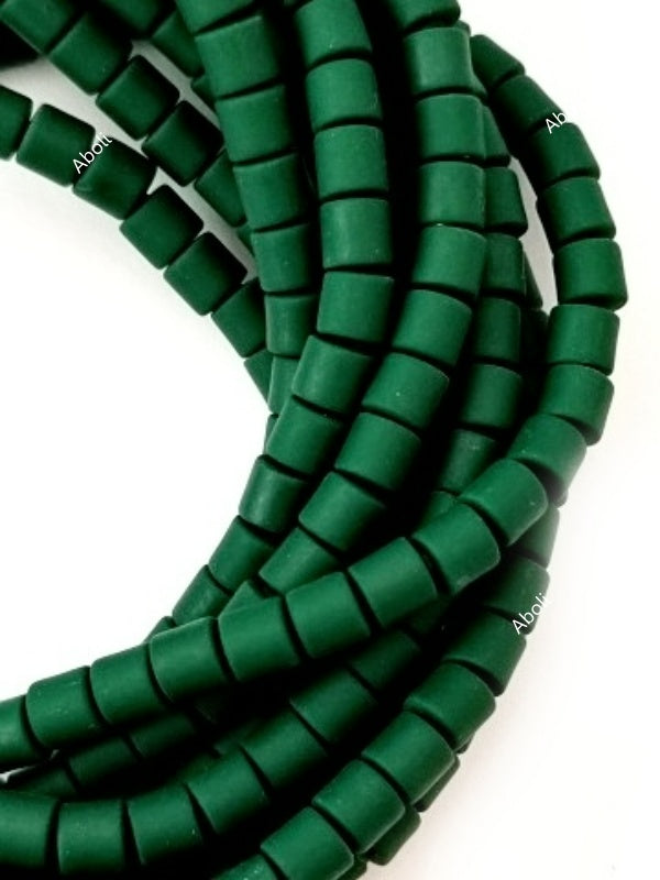 Dark Green polymer clay beads cylinder shaped beads 6 x 5 mm PCB03 1 full strand
