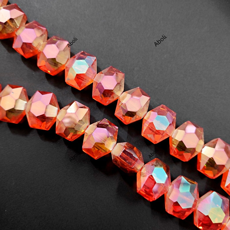 Flat Hexagon Faceted crystal glass beads 15 x 12 x 10 mm big glass beads FGB80