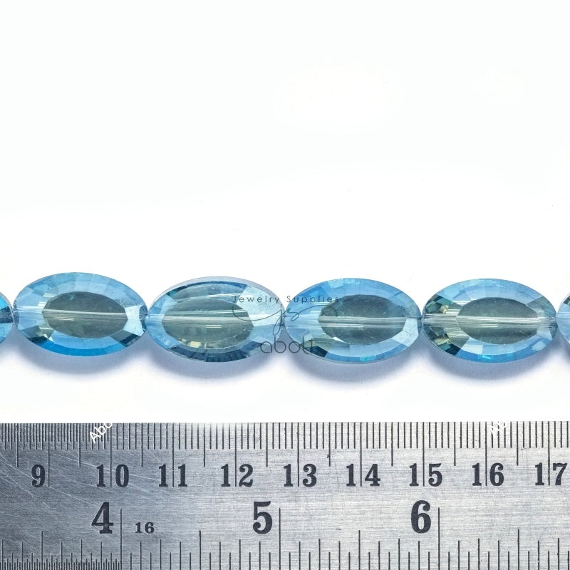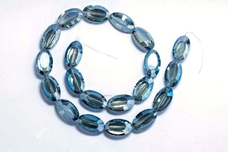 Flat Oval Faceted crystal glass beads blue 22 x 13 x 8 mm big glass beads FGB42