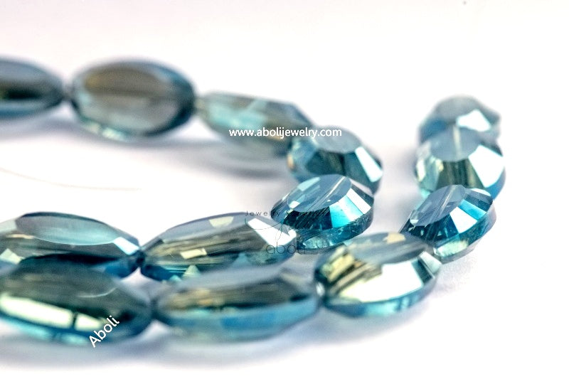 Flat Oval Faceted crystal glass beads 22 x 13 x 8 mm big glass beads FGB42
