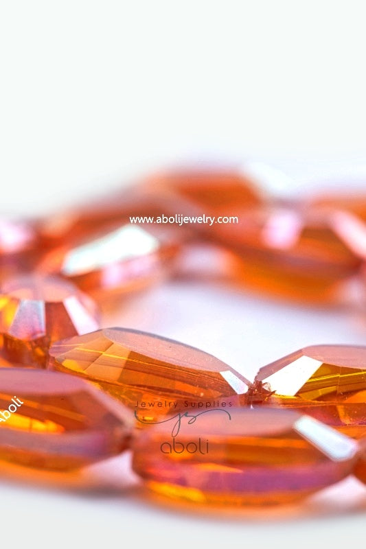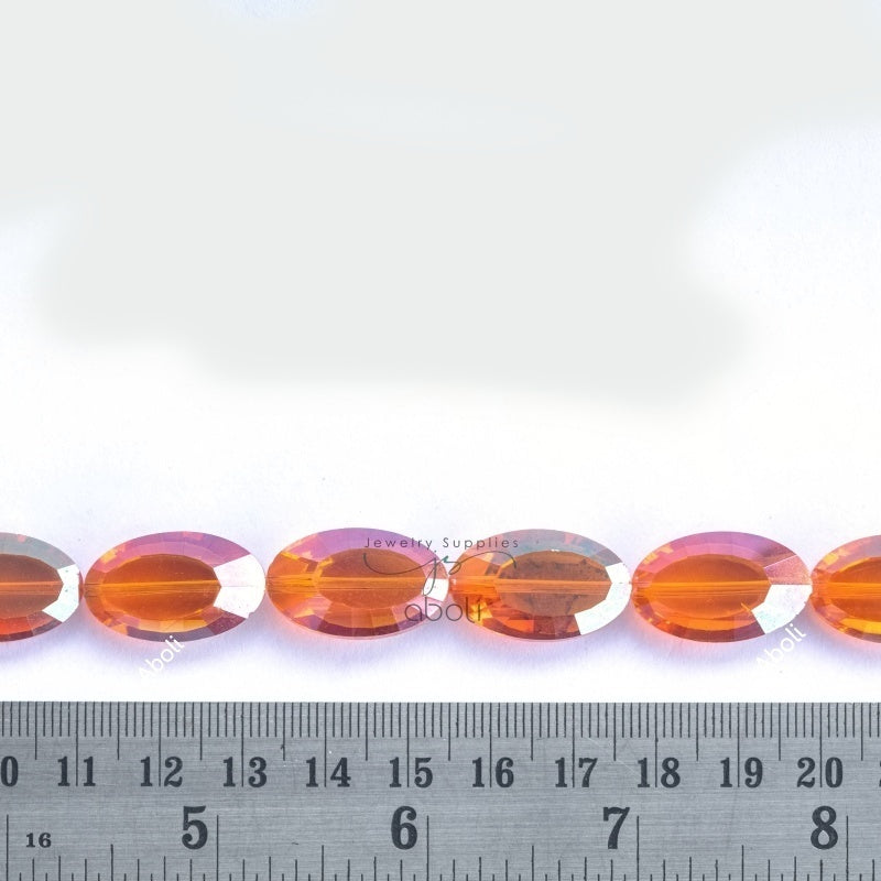 Flat Oval Faceted crystal glass beads pink orange 22 x 13 x 8 mm big glass beads FGB43