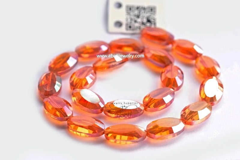Flat Oval Faceted crystal glass beads 22 x 13x 8 mm big glass beads FGB43