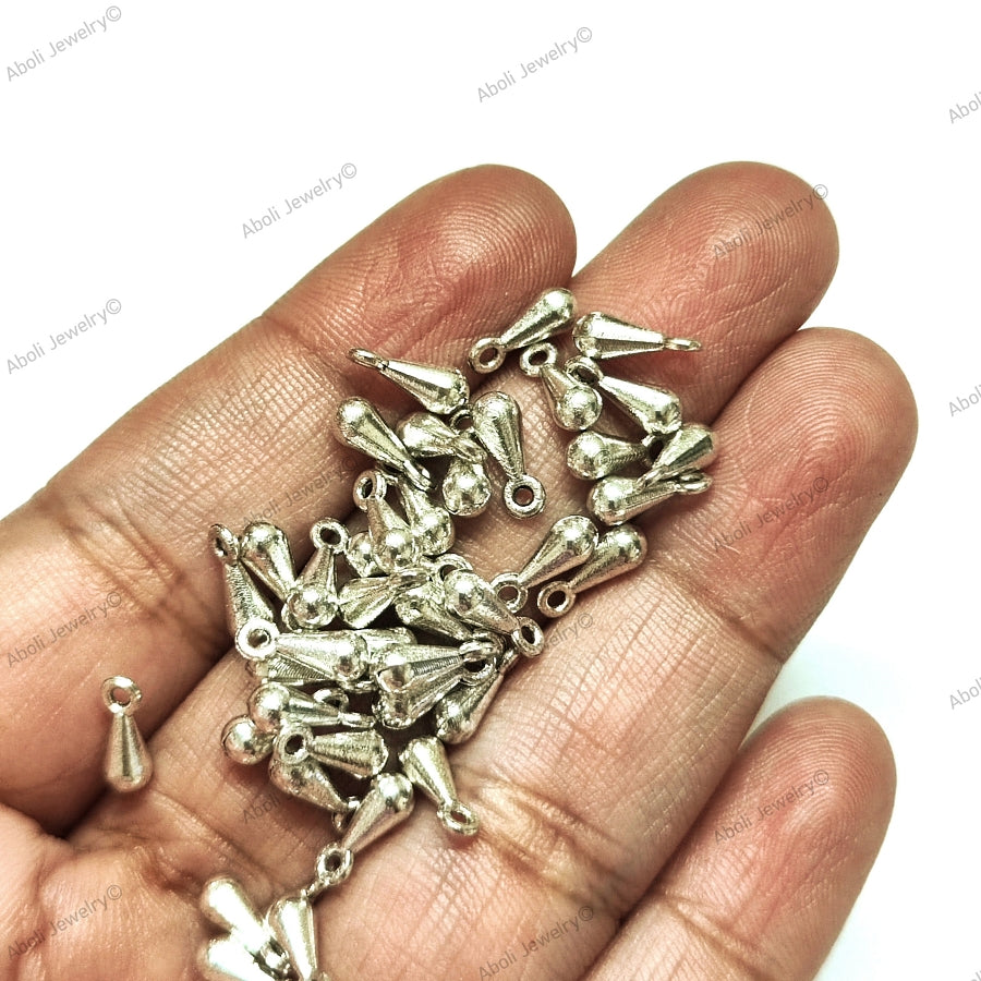 German silver drop shaped dangle beads dangles jhumki 8 x 4 mm dangle charms latkan metal beads GSDB17 10 gm