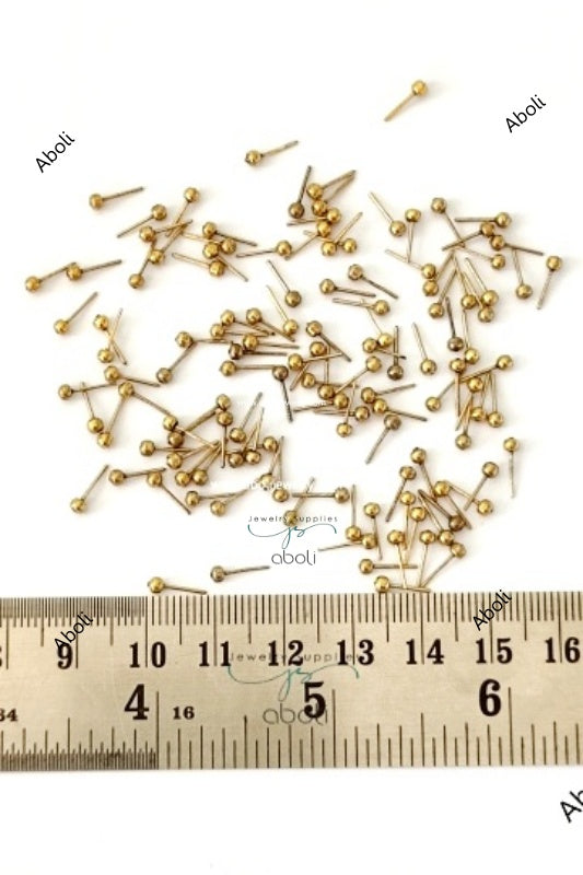 Antique golden ball pins dangles 9 x 2 mm German silver dangle pins for jhumka earrings jhumki GSDBP25 The image with scale shows 10 gm quantity.