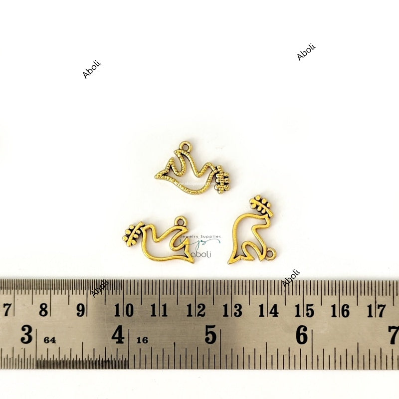 Golden flying dove with olive branch bird charm fly spring CHMG203 2 charms