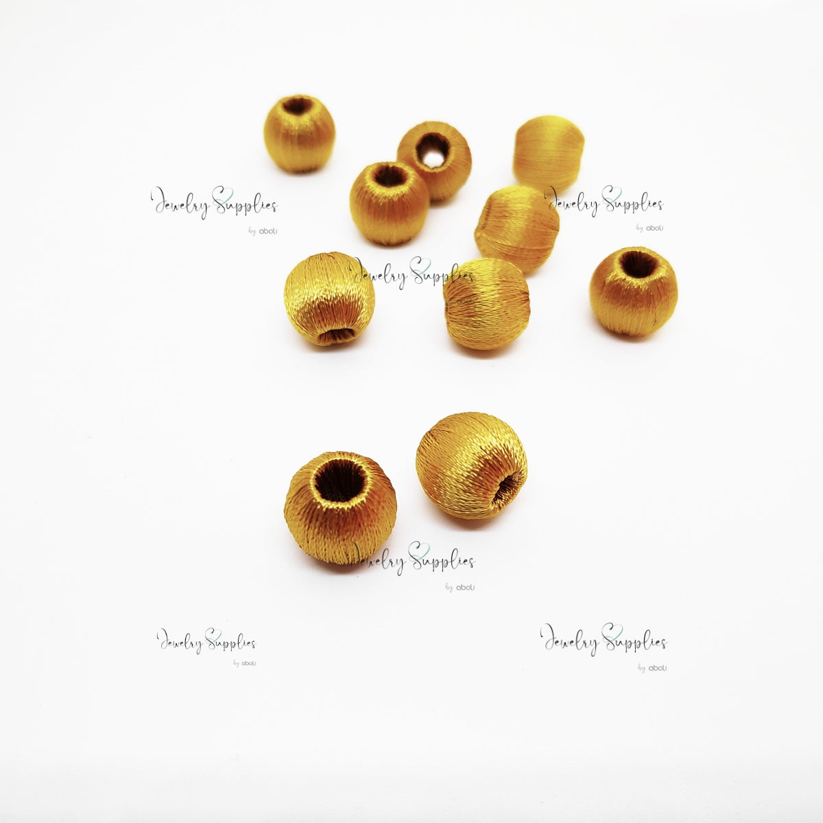 - Golden silk thread wrapped beads 10 mm professional premium finish for silk thread jewellery STWBG10 1 bead