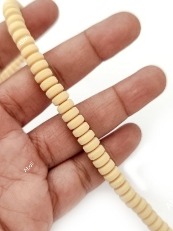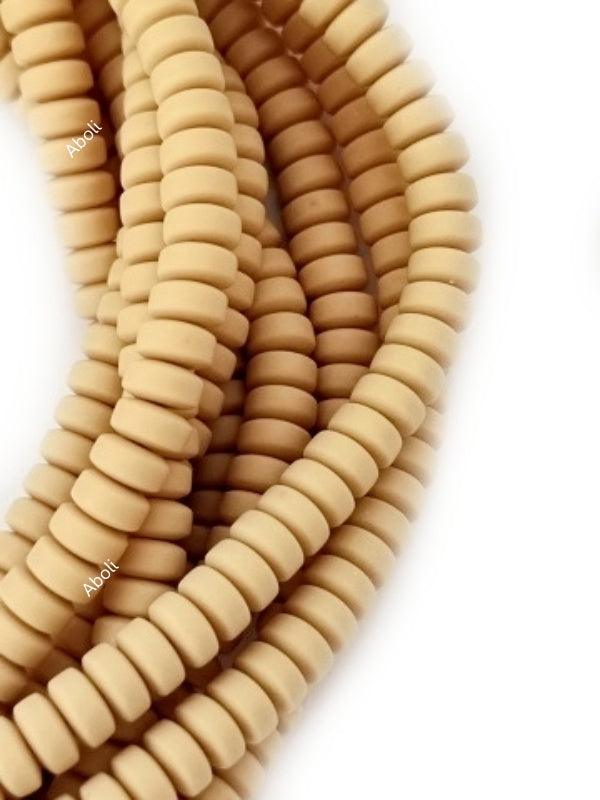 Nude disc polymer clay beads straw coloured tyre shaped beads 6 x 3 mm PCB09 1 full strand
