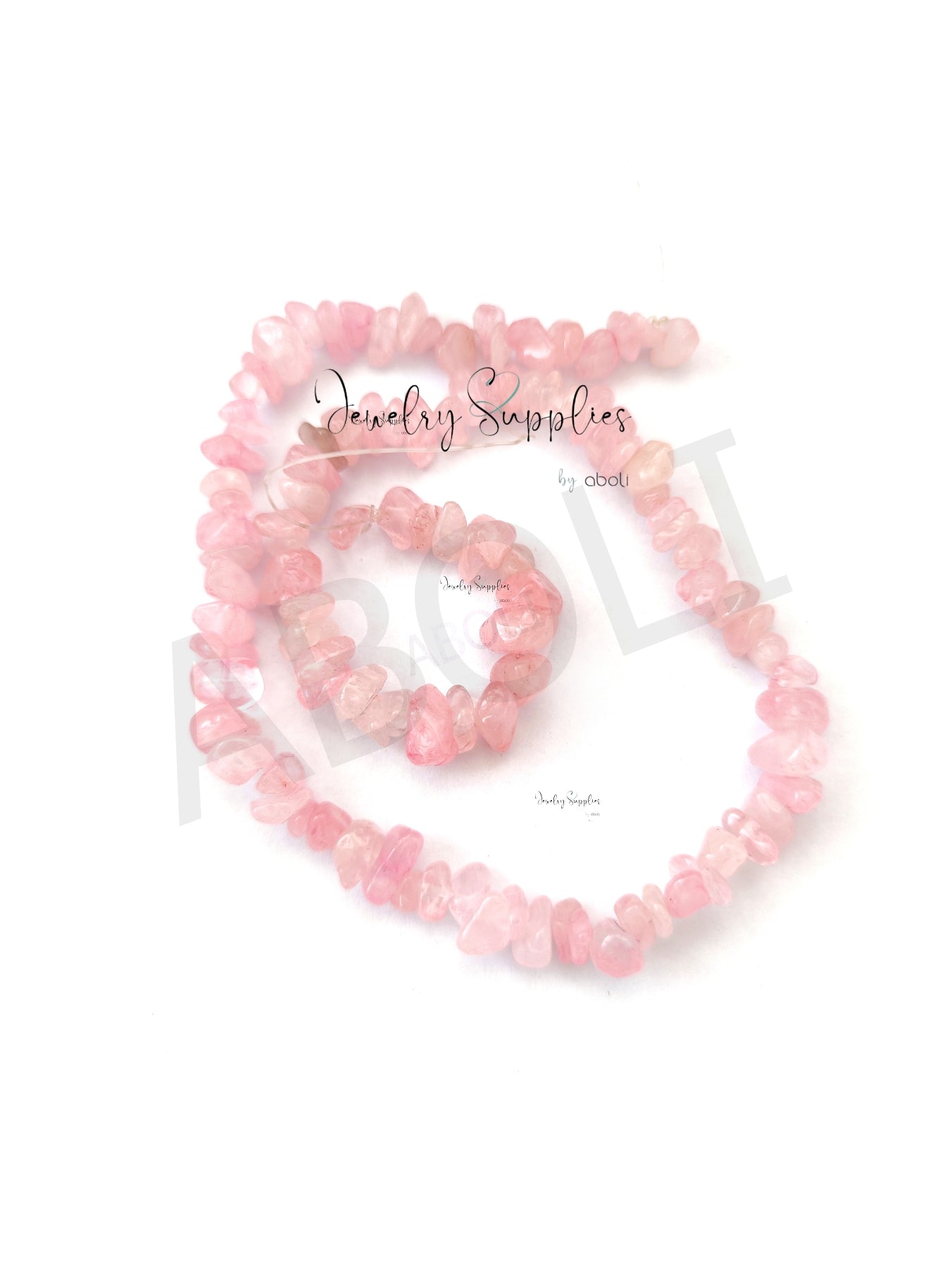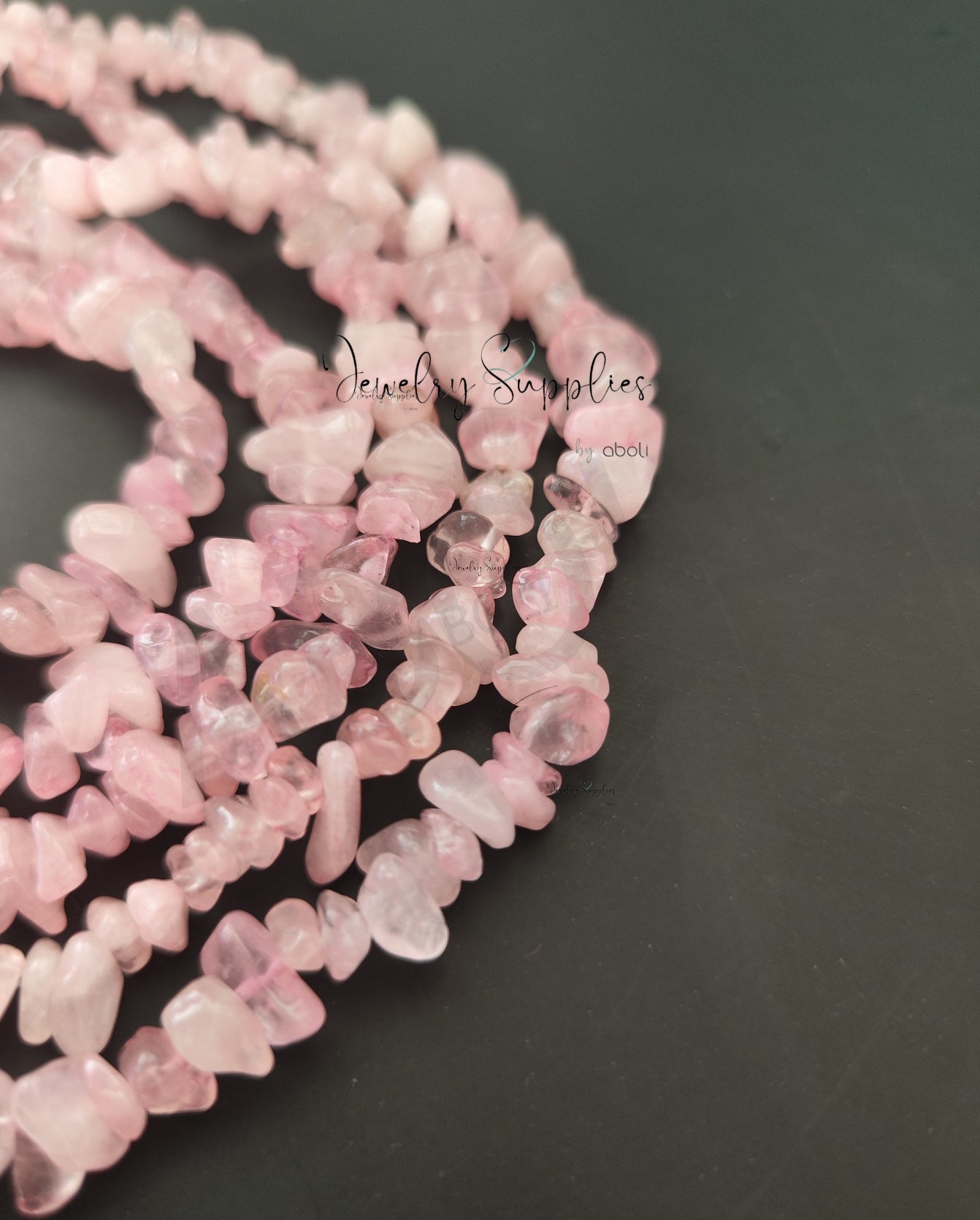 - Rose Quartz uncut beads chip beads 1 full strand UCB07