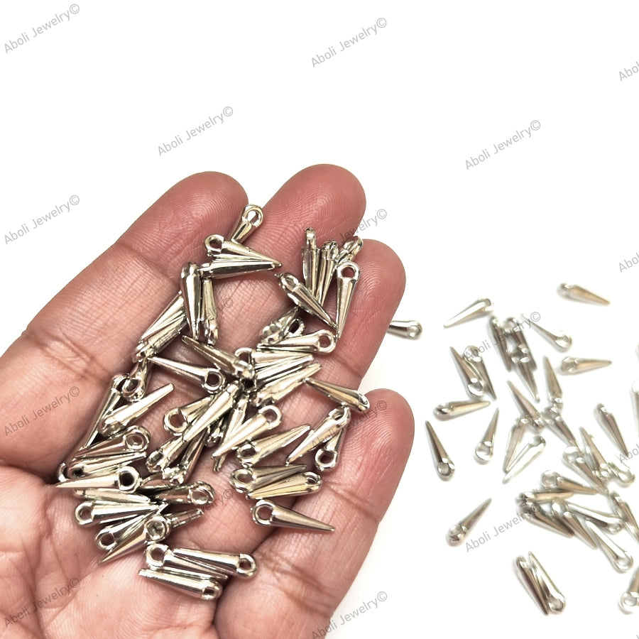 Silver Drop Acrylic Dangle Beads Latkan 13 x 3 mm light weight spike craft beads ASDB13 10 gm