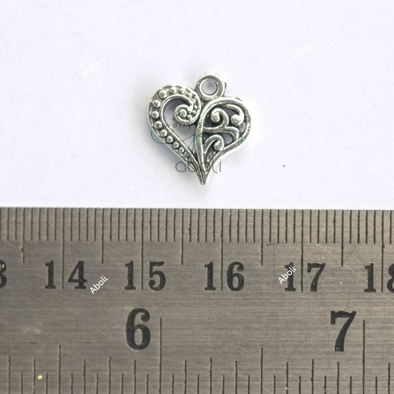 Silver heart filigree heart silver charm double sided CHMS159 2 charms