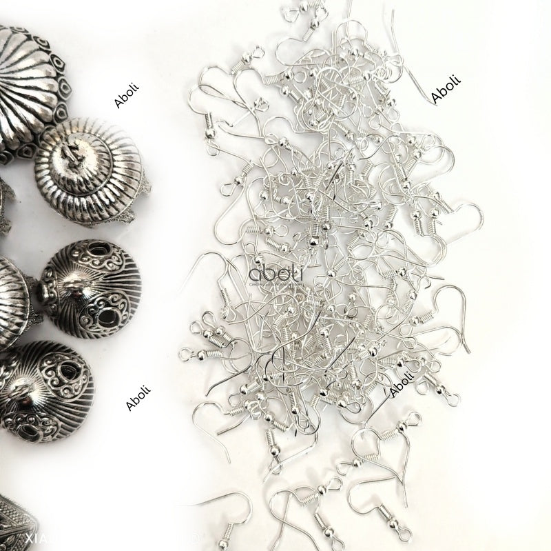Silver Jhumka Bases assorted mix 1 kg + silver fish hooks MJBSAMX