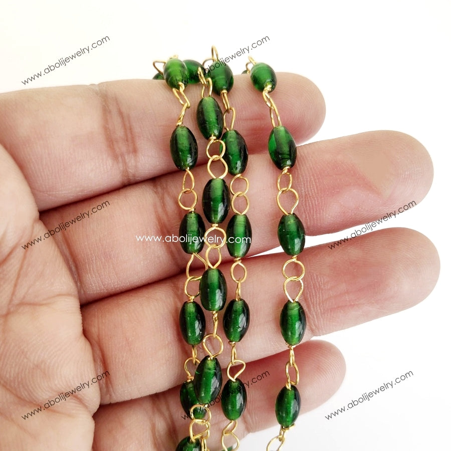 - Tarnish resistant Dark green oval beaded chain glass beads brass wire DGBC11