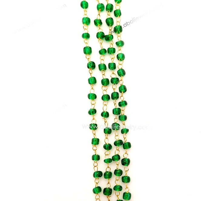 Tarnish resistant green beaded chain glass beads brass wire GBC11 1 meter