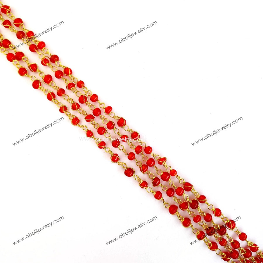 - Tarnish resistant Orange beaded chain brass wire wrapped glass bead chain OBC5