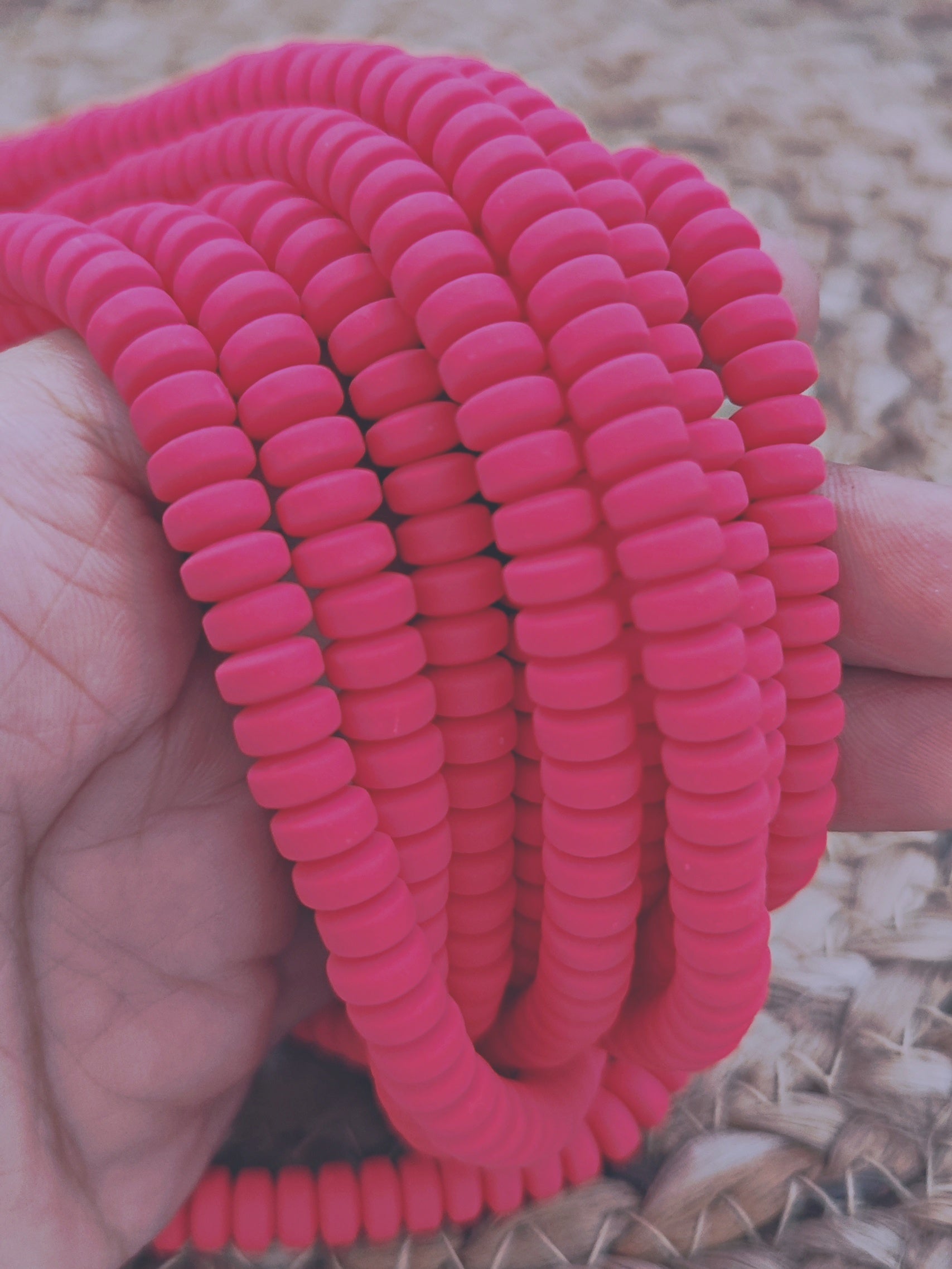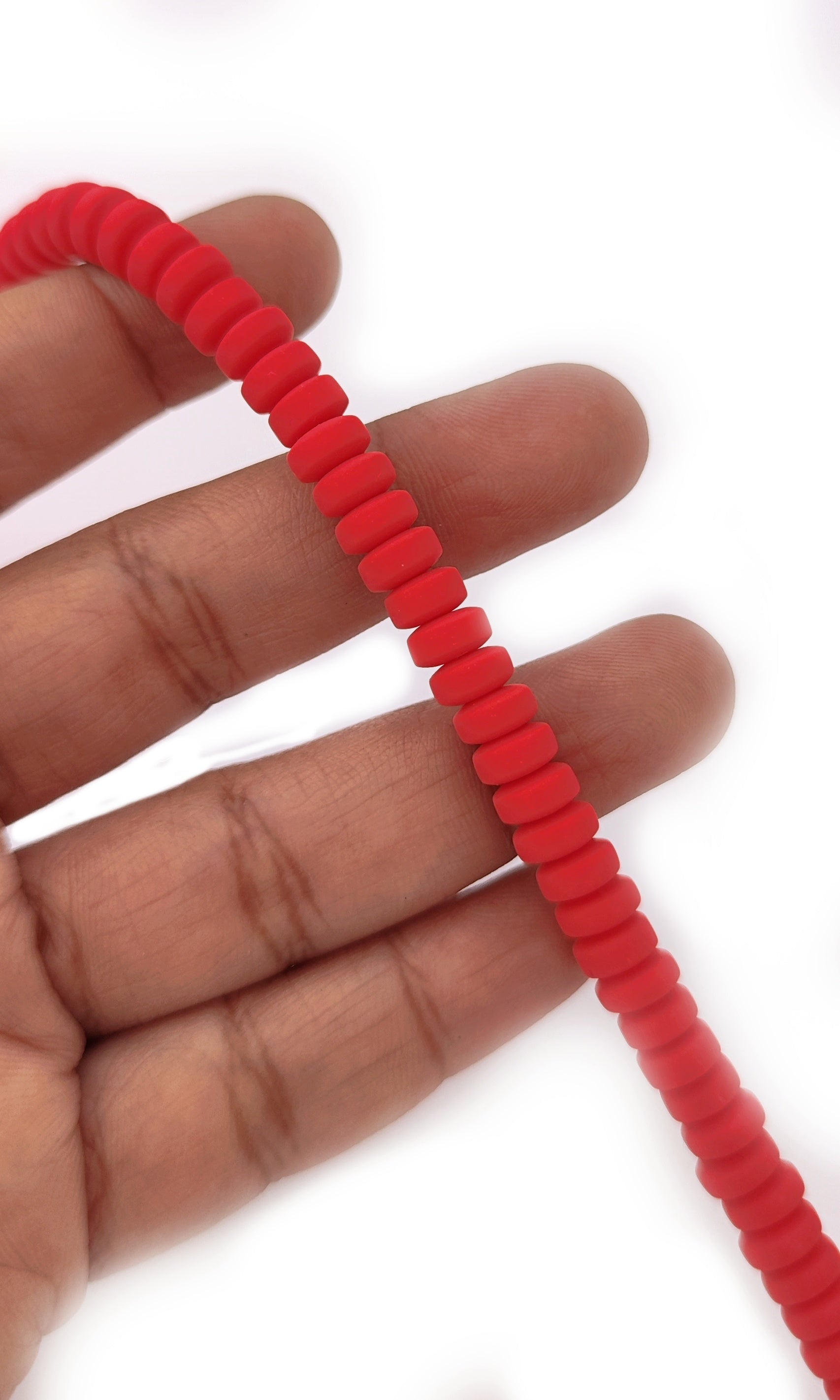 Tomato red disc polymer clay beads tyre shaped beads 6 x 3 mm PCB07 1 full strand